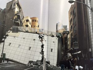 (三ノ宮の繁華街で倒壊したビルが道路を遮断)
