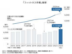 2010年のアメリカ大手フィットネスチェーンの日本進出は、日本におけるフィットネス文化に火をつけ、2010年当時は約3000店舗だったフィットネスジムは、約15年の間に6500店舗を超えるまでに増えました。(下表は帝国データバンク調べ)